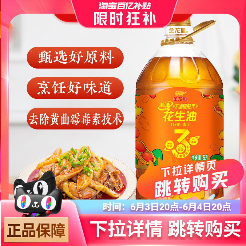 详情页下拉——“淘金币大额抵扣” 喵满分 浓香型物理压榨一级花生油 5L 71元左右, )